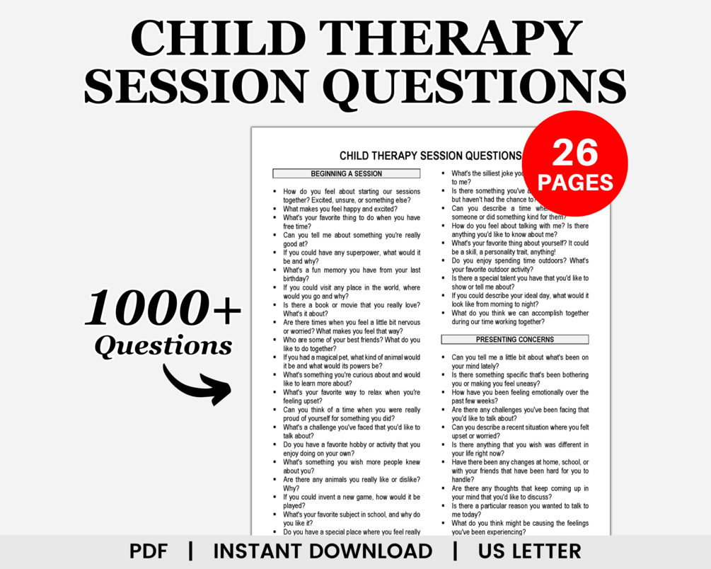 Designed to spark insightful dialogues and facilitate meaningful discussions, these thought-provoking therapy session questions for children are made to cover a wide range of topics. These child therapy questions are created to ignite introspection, open up communication channels, and provide valuable insights for both therapists and child clients alike.